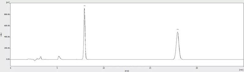 使用EClassical 3200高效液相色谱仪配Supersil ODS2色谱柱分析吡嘧?莎稗磷乳油样品,峰形良好,柱效高,且两个主峰分离度非常好,满足定性定量分析的需求。
