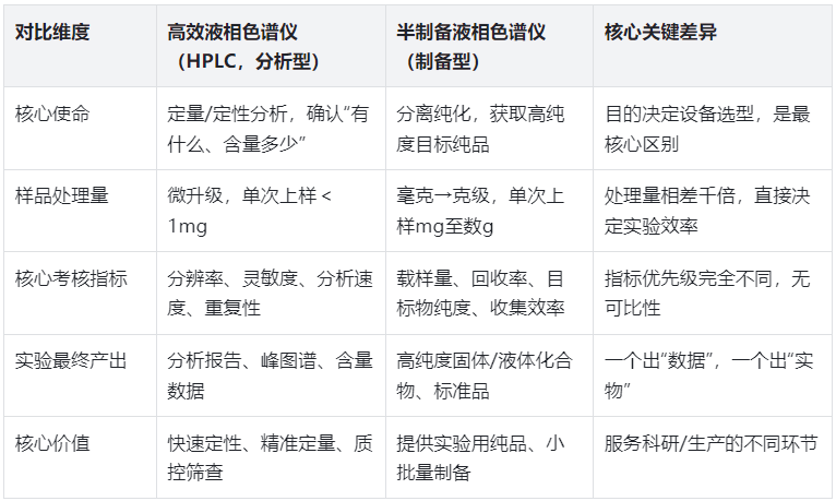 在实验室里,你是否有过这样的困惑:拿到了宝贵的样品,需要分离纯化,但面对不同类型的液相色谱仪,却不知道如何选择?是选用高效液相色谱仪(HPLC)还是半制备液相色谱仪?这个决定不仅影响实验效率,更关乎结果的成败。