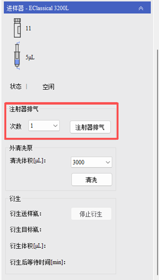 依利特Kromstation软件“针清洗”程序界面,点击注射器排气即可进行进样针和阀的清洗