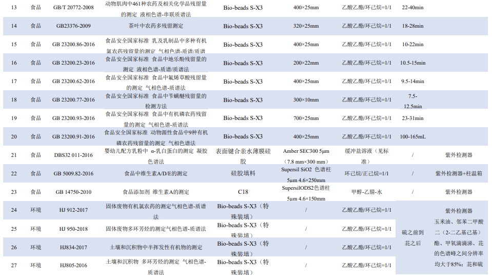 拓展数据:各应用场景的加标回收率报告(88%-95%)、方法精密度验证数据(RSD<3%)、不同规格凝胶净化柱性能对比表;