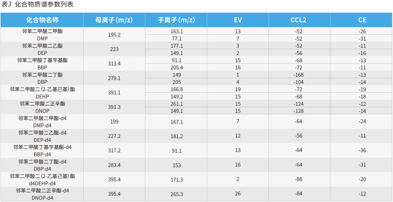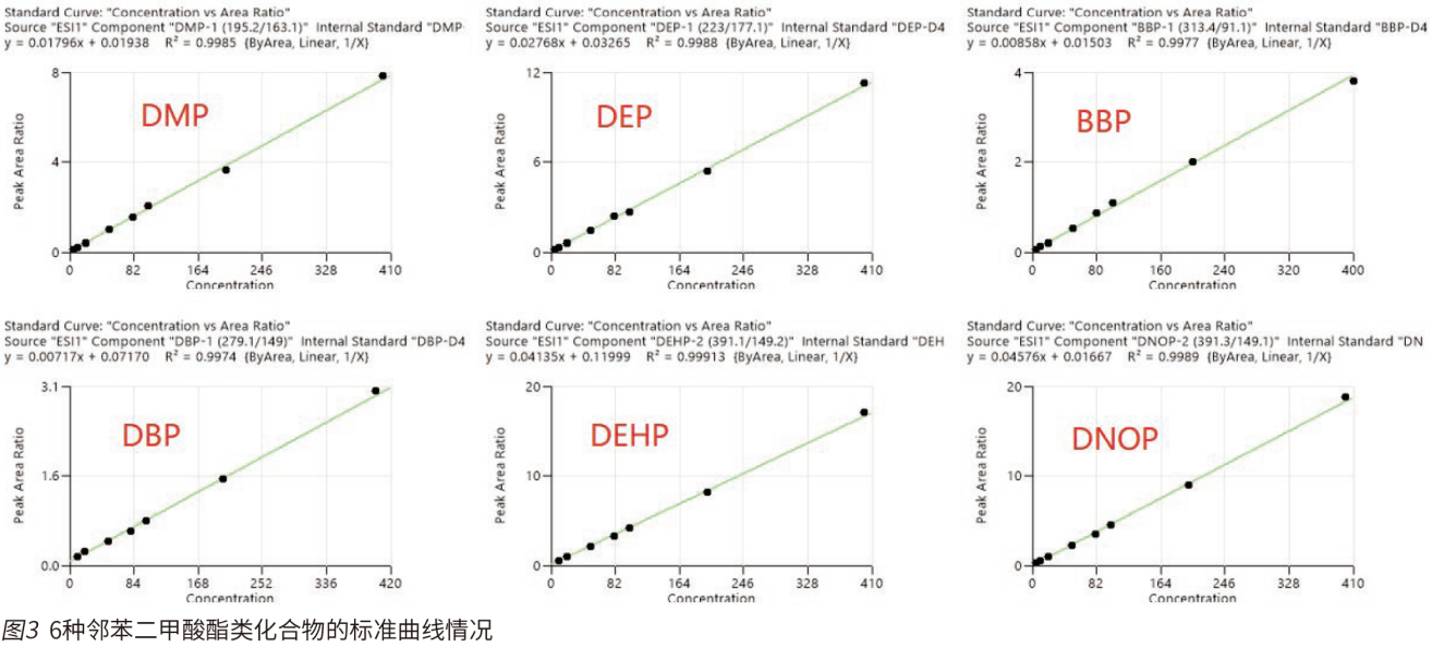 邻苯二甲酸酯(PAEs)是邻苯二甲酸酐与醇的反应产物,是全球生产量大、应用广泛的一类人工合成化工原料,常用作增塑剂和软化剂,用于增大塑料的可塑性和韧性。但 PAEs 易溶解出来,从而进入环境危害人类的健康。美国环保局将邻苯二甲酸二甲酯(DMP)、邻苯二甲酸二乙酯(DEP)、邻苯二甲酸二丁酯(DBP)、邻苯二甲酸二异辛酯(DEHP)、邻苯二甲酸二正辛酯(DNOP)以及邻苯二甲酸丁基苄基酯(BBP)列为优先控制污染物。我国的生活饮用水卫生标准中也规定了部分 PAEs 的限值。目前,我国生态环境部在 2022 年 4 月发布标准 HJ 1242-2022《水质 6 种邻苯二甲酸酯类化合物的测定 液相色谱 - 三重四极杆质谱法》,于 2022 年 11 月正式实施,为防治生态环境污染,改善生态环境质量,规范水中邻苯二甲酸酯类化合物的测定方法,制定了本标准。