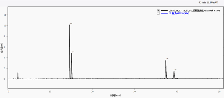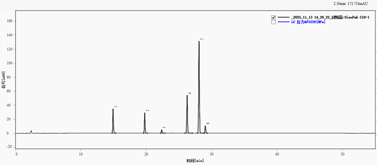 图1. 系统适用性溶液在SinoPak C18色谱柱上分离的色谱图
