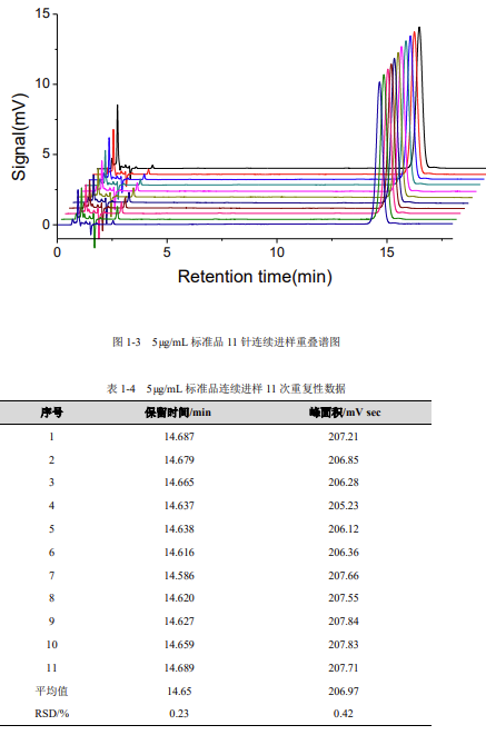 以 3 倍信噪比峰高对应的浓度换算为方法检出限,以 10 倍信噪比峰高对应的浓度换算为方法定量限。