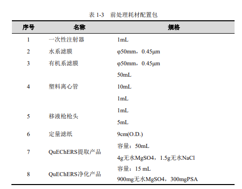本方法应用 QuEChERS 技术,对样品进行前处理。QuEChERS 技术是将水溶液中的固体样品加盐后经过乙腈萃取,然后通过液固萃取去除乙腈中存在的大部分干扰物,后通过一种或多种检测技术进行分析。