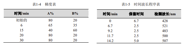 流动相:A:0.02mol/L 乙酸铵溶液,B: 甲醇(梯度洗脱)