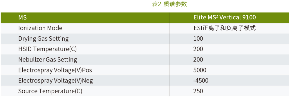 Elite MS2 Vertical9100 系统完全可以遵从法规满足实验室对于农产品中多重农药残留的日常监测工作。MSVertical 9100 系统具有超快的检测速度和正负切换速度,从容应对日趋严格的检测法规和要求,此外自清洁免维护的硬件设计,可以大大提高仪器的抗污染能力和数据稳定性,为实验室面对复杂基质样品时带来更大方便。