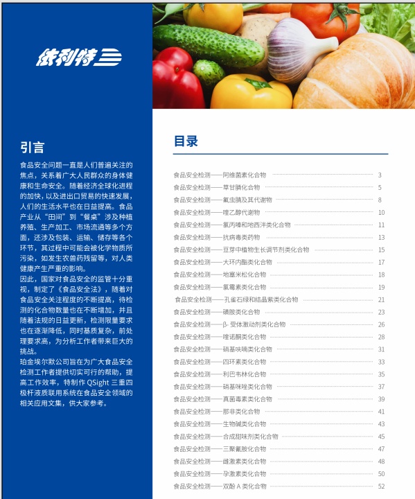 上述仅为部分典型应用示例,文集中还包含氟虫腈代谢物、地塞米松、孔雀石绿、真菌毒素、双酚 A 等 20 + 类污染物的详细检测方案,涵盖前处理步骤、仪器参数优化、谱图解析、方法验证等核心内容,可直接用于实验室常规检测。