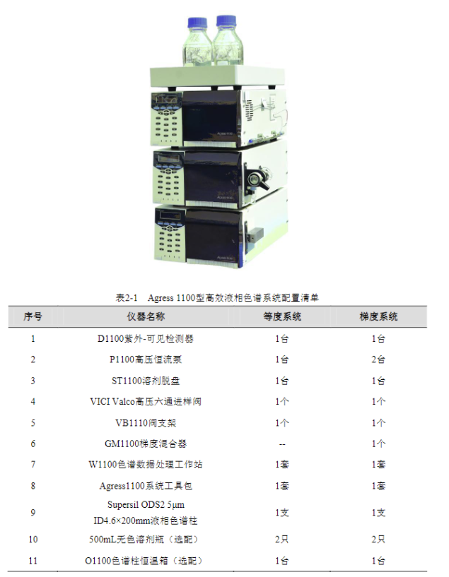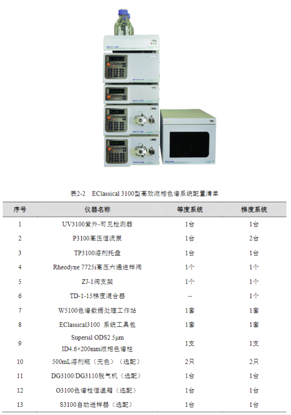 表 2-2 EClassical 3100 型高效液相色谱系统配置清单