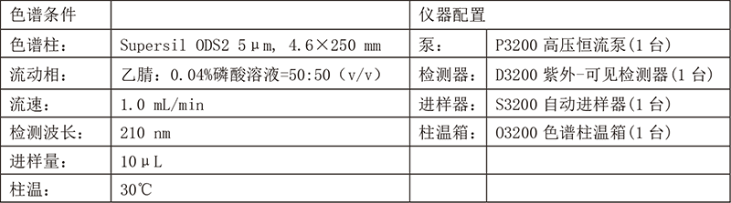 色谱条件及配置: