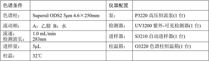 使用EClassical 3200高效液相色谱仪配Supersil ODS2色谱柱分析橙皮苷样品,目标物峰形良好,柱效高,满足定性定量分析的需求。
